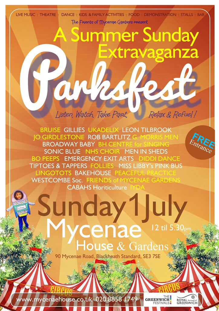 Sunday 1 July 2018 – 12 – 5.30pm – FREE at the gardens behind Mycenae House in Blackheath [map]