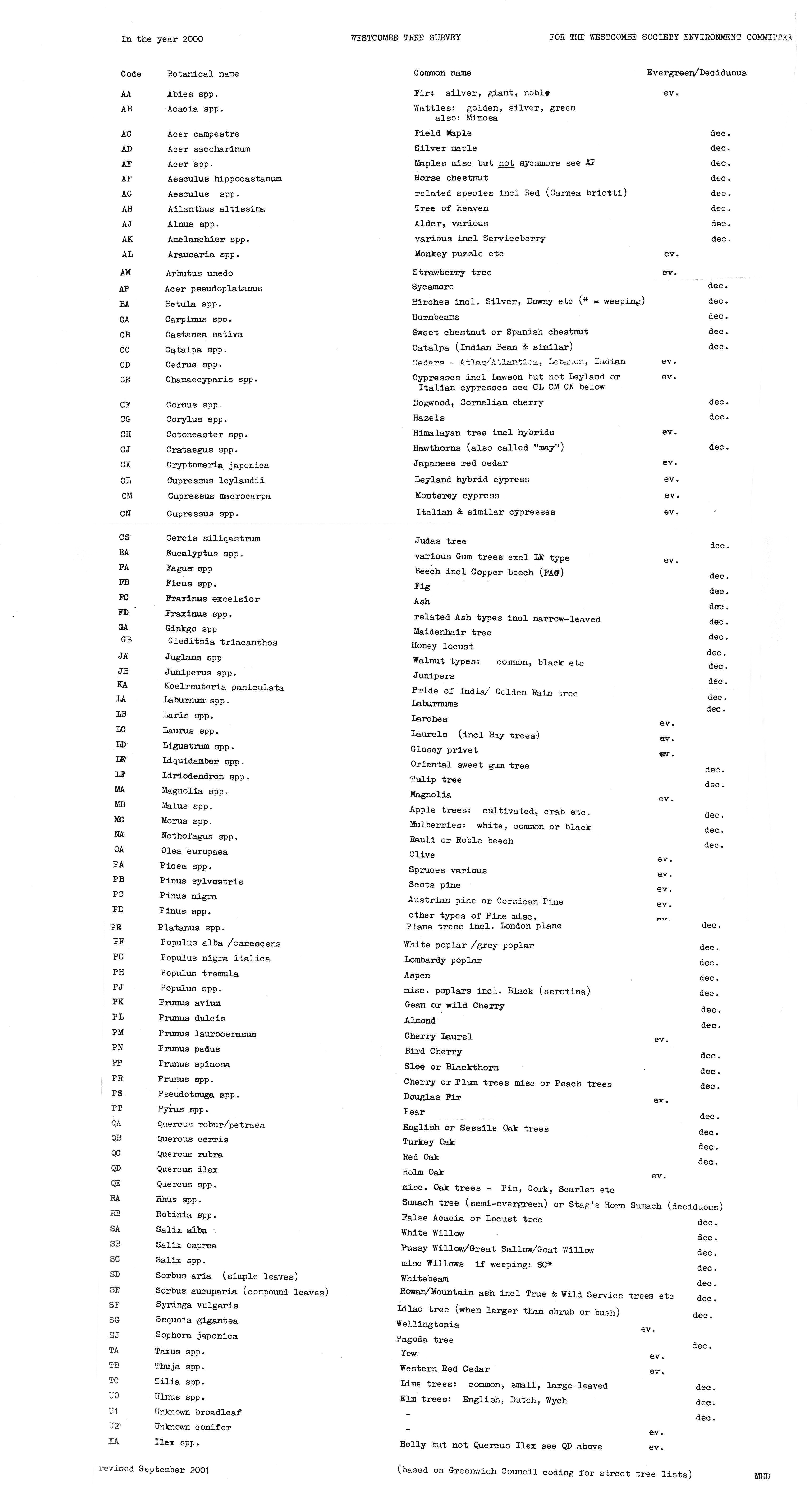 This 2004 tree plan is obviously slightly out of date, but is a useful guide to the trees in the gardens. It was prepared by Miles Dove for the Westcombe Society and is reproduced here with their kind permission.